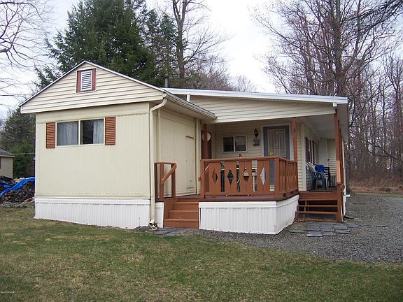 Just listed in Promised Land. Adjoining the Promised Land State park and the Delaware State Forest. 100 yards to lower lake. Your own .23 acres of land. Mobile home with spacious family room addition, cozy wood burning stove for chilly nights, master bedroom with a half bath, 2nd bedroom, full bath & washer/dryer hookup. Spacious deck and covered porch to sit. Relax & enjoy the outdoors. This property has been cared for with a lot of love! It's ready and waiting for you to move in!
