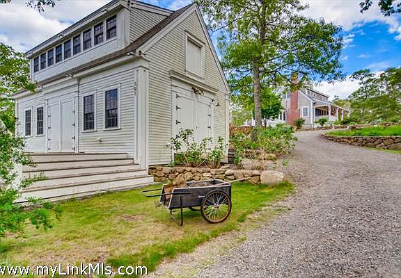 Privately situated on a hilltop in Lower Makonikey, this extraordinary property feels like a pastoral retreat and features a charming 4-bedroom home, a classic 26x30' barn with two floors of living space, and an expansive stone patio with built-in masonry grill. The property exudes rural character with stone walls, flower beds, vegetable garden, chicken coop, potting shed and fire pit. From the entry off the farmer's porch to the rounded ceiling in the light-filled dining room, this house has soul. Take in the sunset over the waters of the Vineyard Sound from the widow's walk. A private path through the woods on the property connects directly to Lambert's Cove Road and the trails of Ripley's Field beyond. Easy walk or bike ride down a quiet dirt road to Lower Makonikey Beach. (note: 3025 sq ft = 1675 sq ft main house plus approx 1350 sq ft in barn)