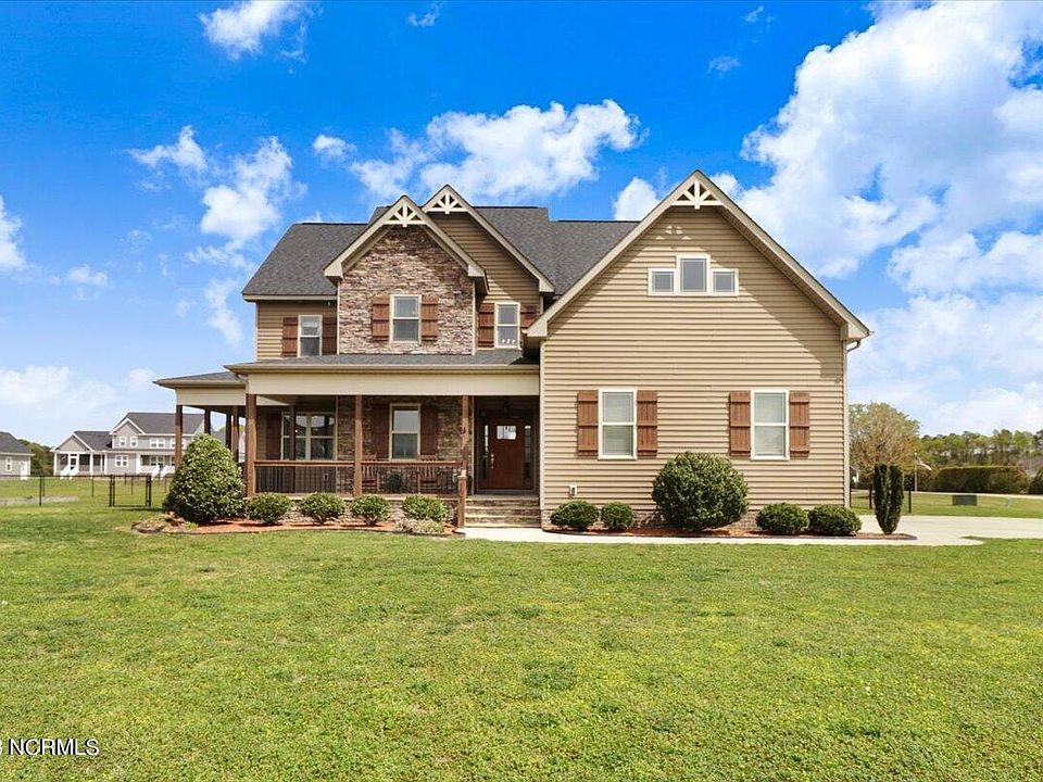 Absolutely stunning Bobby Stone custom home in the desired Meares Bluff Plantation subdivision! This home boasts four large bedrooms and three full baths with a bonus room as well as a formal dining space. The impressive master bedroom exalts a walk in closet equipped with a marble topped dresser island . Enjoy your summers with a wrap around porch, screened in patio and spacious cul-de-sac lot perfect for all occasions. The unfinished attic has over 650sqft with plenty of storage or expansion potential. Close proximity to Seymour Johnson AFB, book your showing today!