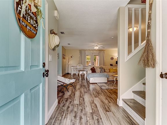 Adorable single family home in desirable Sugarmill Plantation. Enjoy the light and bright kitchen that was recently updated with white kitchen cabinets, a fresh coat of paint, and granite overlay countertops. A large family room, half bath, indoor laundry, and eat in kitchen round out the main level. Upstairs you'll find 2 guest bedrooms separated by a full bath and a large master bedroom with en-suite and walk in closet. All bedrooms feature built-in shelving systems in the closets and bathrooms have granite overlay countertops. The exterior of the home features a fully fenced back yard, large patio, and covered front porch that is waiting for a set of rocking chairs for its new owners to enjoy a cool drink on a warm evening!