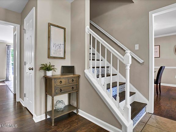 Welcome home to this move in ready beauty! The inviting rocking chair front porch is perfect for your holiday decorations and greeting family and friends. Upon entry, you'll love the flexible space to your left that can be used as a home office, formal living or potential ground level guest space. To your right there is a formal dining room which connects to the large kitchen. The heart of the home is located through the entry hall with a wide-open kitchen with granite counters under cabinet lighting, 1 level breakfast bar, and living room filled with windows and natural light. There is convenient side entry from the oversized driveway and a deck outback for grilling overlooking the fully fenced back yard. All of the bedrooms and laundry are located upstairs. The primary suite has so much space, and a bonus nook for sitting area, nursery or getting ready area attached. Split plan upstairs gives just enough space between the 2 other guest rooms and bath to make sure everyone feels comfortable. There is no carpet, no HOA, no flood zone and you can be in either the heart of downtown Wilmington or sunny Wrightsville Beach this summer in a 20-minute drive!