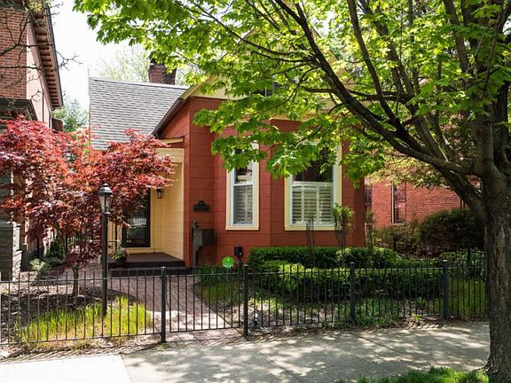 OPEN Sunday 5/13 from 1-3 pm! Updates galore featuring 1st floor bedroom, bath, and laundry! Newer higher-quality floors throughout, exposed brick double-sided fireplace upgraded to gas with remote, updated bathroom fixtures, master bedroom with walk-in closet, new furnace & A/C. French doors in the kitchen open to spacious recently poured patio and beautifully landscaped fenced-in back yard. Recently added 2-1/2 car detached garage with loft storage provides for loads of storage and workspace. Located one street south of Historic German Village makes this a desirable walking neighborhood with parks, coffee, yoga, bakeries, and restaurants all as little as 2 blocks away! Convenient access to High Street, freeway & downtown. Don't miss this impressive renovation!