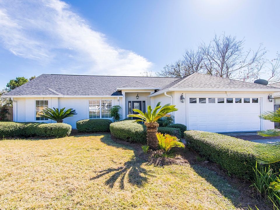 Don't miss out on this beautiful home! 3 bed, 2 bath beach home centrally located, less than 2 blocks from the beach and sits on almost a 1/2 acre in a quiet cul-de-sac. This home has been totally remodeled inside and out! Brand new roof, new flooring throughout, updated kitchen with all new appliances, flooring, cabinets and quartz counter tops. Open floor plan with spacious living room and dining area. The master bedroom has a walk- in closet with built in shelves. Master bath is completely remodeled with tile floor, tile shower and dual vanity. Open porch with views of a private and beautifully landscaped yard. New paint inside and new exterior paint as well, using the best Elasto Merick. Home also has a roomy 2 car garage with stained floors. This is a must show!