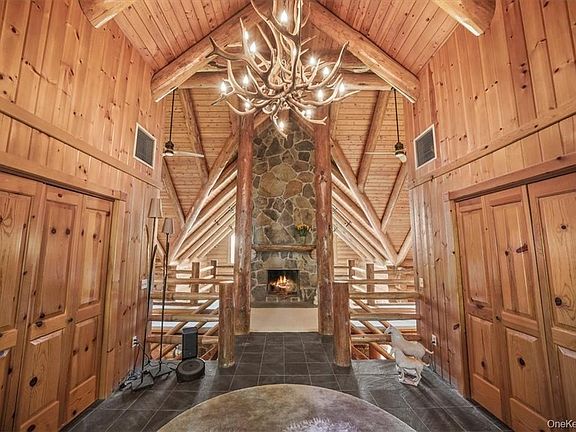"Sunset Lodge," carefully curated and impeccibly maintained, is available for only the third time. This once in a lifetime estate comprises 38 acres, yet is only 7 minutes from Metro North NJ Transit. Exquisite main home, two ponds, 20 acres fenced (+10 wooded acres), a six stall horse barn with apartment, spectacular warm weather entertaining area with stunning 18 x 65 foot infinity pool, 8 person in-ground jacuzzi, full kitchen and much more are offered. The many recent improvements include new cedar roof, all logs refurbished inside and out and resurfaced tennis court. This extraordinary estate was built and maintained by Montana builders/craftsman lending to its authenticity. From the newly rebuilt private entrance bridge to the crunch of the gravel driveway to the bold log construction and the soaring ceilings and vistas, you have arrived. Explore the many farmer's markets, wineries, antiquing and fine dining in the Hudson Valley. For the investor, 2 acre minimum. Additional Information: Amenities:Guest Quarters,Stall Shower,Storage,Tennis,ParkingFeatures:2 Car Attached,
