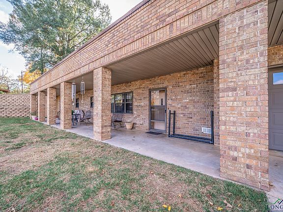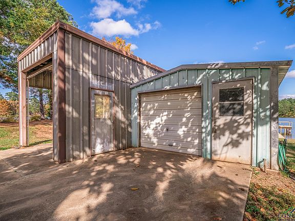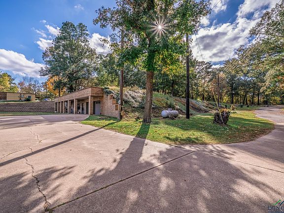Experience the epitome of secure and sustainable living in this unique 3-bedroom, 2-bath underground house on Lake Devernia in the Gladewater school district and just minutes from White Oak and Longview. Crafted with concrete-filled, cinder block walls, robust railroad steel beams and insulated with styrofoam sheathing and thick plastic liner, this home is not only a fortress but an eco-friendly haven. Nestled against an earth berm, enjoy energy efficiency and a harmonious blend with nature while you soak in the soothing WATERFRONT views from the expansive front porch. Grab a fishing pole and head out to your impressive PIER and BOATHOUSE for hours of relaxation and enjoy the nearby workshop and tall storage area plus an extra storage building on top of the hill for housing all of your yardcare essentials. Inside, discover a thoughtfully designed layout featuring a large living room with a view anchored by a brick wall and fireplace, a spacious laundry room with lots of storage, and a small private office off the dining room. The kitchen and laundry room are illuminated by natural light from the skylights, creating a warm and inviting ambiance. The kitchen features lots of cabinet and counter space, a breakfast bar, double ovens and desk area. The bedrooms offer tranquility, while the master bedroom boasts stunning views of the lake from the deep set windows with wide windowsills due to the extra-thick walls. Walking through this home, you'll be impressed by the attentive care it has received over the years as well as appreciate the abundance of custom cabinets throughout the home. Embrace a lifestyle that seamlessly integrates modern comfort with environmental consciousness on this 1.68 acre lot. The home is an underground gem of 1946 square feet plus an oversized garage that provides not only a secure retreat but an opportunity to live in harmony with the breathtaking landscape. Seize this chance to own a home where innovation meets nature, offering unparalleled views and a truly unique living experience in this private lake community. You'll enjoy one of the largest lots as well as one of the longest runs of shoreline on the lake!