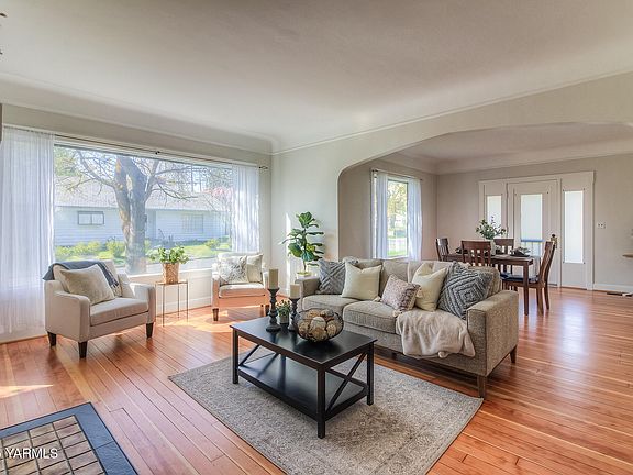 Step into timeless charm and generous space with this inviting 1937 single-family home, nestled in Yakima's beloved Historic Barge Chestnut Area. This beautifully preserved and thoughtfully updated residence offers 3,145 square feet of living space with three bedrooms and two bathrooms--ideal for growing families or those who love to host.Set on a spacious corner lot with mature landscaping and shade trees, this home boasts great curb appeal with its cozy covered front porch. Inside, an open-concept layout makes everyday living and entertaining a breeze, featuring professionally refinished hardwood floors, upgraded vinyl flooring and carpet, and a welcoming fireplace as the centerpiece of the living area.The kitchen shines with brand-new stainless steel appliances, updated countertops and sink, and a breakfast bar overlooking the neighborhood--perfect for casual mornings. Enjoy the peaceful sunroom, complete with a built-in bench and storage, or retreat upstairs to a private suite with its own living space and full bath.Additional updates include new interior/exterior paint, refreshed bathrooms, and new garage doors. The full basement offers framed walls, ready for your creative vision. A detached 2-car garage and city irrigation round out this impressive package.