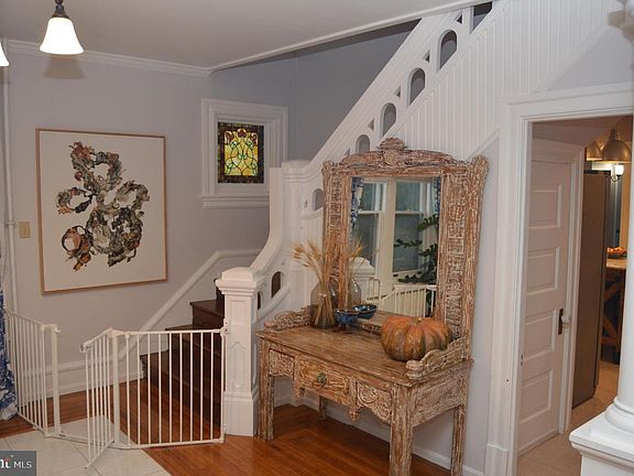 The first thing that you will notice about this lovely home is the neighborhood. Here you will find beautiful early 20th century homes of many styles and classic architecture. The quiet neighborhood is a mere seconds to the Rt 422 bypass and downtown Reading. Within walking distance you will enjoy all that the ever-growing West Reading shopping area has to offer; from specialty shops and eclectic restaurants, to the many art festivals, music events and farmer's market that attracts many. The home itself is a pleasure to view. As you approach the home, you are greeted by a huge covered, wrap-around front porch where you can enjoy a cup of coffee while watching the world go by. Enter the home into spacious foyer/parlor that is highlighted by a hardwood floor with inlaid tile. You can't help but notice the beautiful constructed staircase that leads to the 2nd floor. The Living Room is bright and airy, taking advantage of the corner, triple window scheme, and corner fireplace is great for those chilly winter nights. Walk though the French Doors into the large Dining Room that is highlighted by lovely stained glass windows, and a grand, custom made Dining Room table that remains with the home. The Kitchen features stainless steel appliances, double bowl sink and tile floor. Off the Kitchen is an additional room that could be a home office, playroom, or anything that you can imagine. Upstairs, four roomy bedrooms await you, each bringing in plenty of light into the home. There is a balcony off of the 4th bedroom that overlooks the back yard. Additional features include crown moldings, hardwood floors, Powder Room on 1st floor, new roof on home and garage, converted from oil to gas heat heat, and so much more!