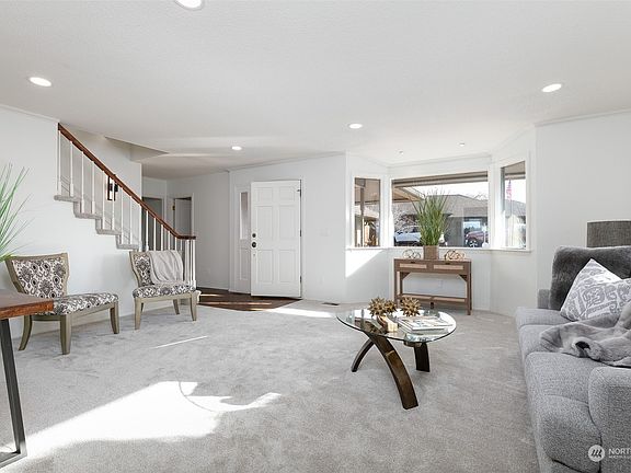 Move-in ready and beautifully updated, this stand-alone condominium in Summitview Country offers lovely Cascade Mountain and territorial views. Featuring new carpet, lighting, and a neutral palette, the main floor includes an open-concept kitchen/family room, formal dining, sun-room, and primary suite. Upstairs, enjoy a bedroom or flexible living space with a view, a half bath, and finished storage. Outside, relax on the spacious view deck or tend to the garden. A flat driveway and oversized attached 2-car garage add security and convenience. Experience style, comfort, and scenic beauty in a lock and leave perfect package!