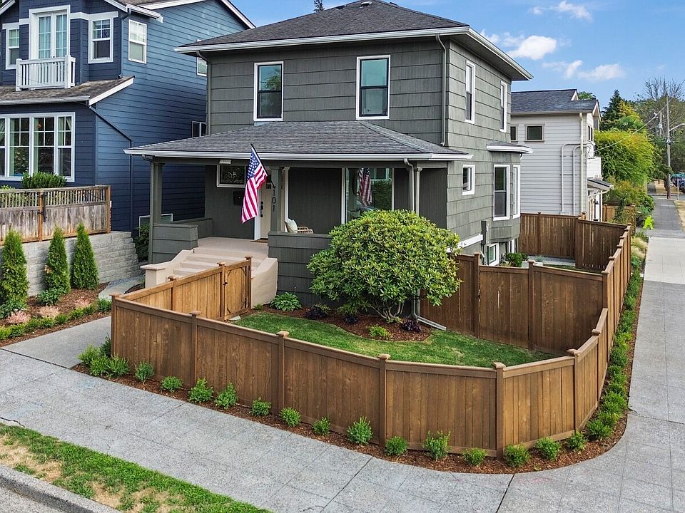 This early 20th-century Seattle Craftsman has been reimagined with a complete to-the-studs remodel, blending modern comfort with its original charm. On a prime corner in lower Phinney, two blocks west of Phinney Ave, the home welcomes you with a wide covered porch. Inside, the foyer and open staircase lead to a new kitchen, bay-windowed living and dining rooms, and three upstairs bedrooms including a primary suite. The full finished basement with ¾ bath is perfect for an office or ADU. All new wiring, plumbing, heating and air conditioning, roof, and seismic reinforcement ensure it’s ready to offer another century of gracious living.