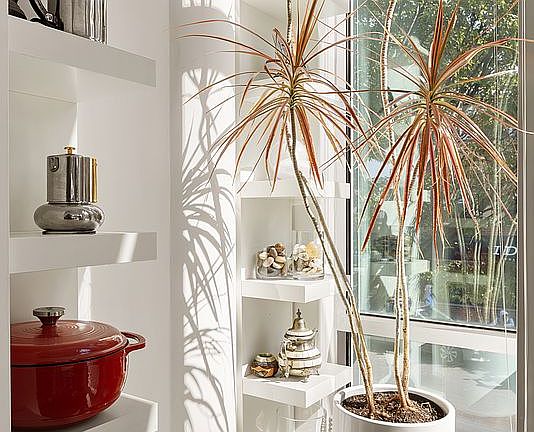 Well planned and well appointed, the smartly designed kitchen offers an attractive practicality. With a suite of appliances by Bosch and FCI, fixtures by Dornbracht, and ample Ceasarstone counters and Veneta Cucine cabinets, this big kitchen is ready for all of your culinary adventures.