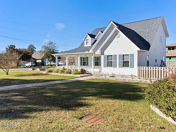 Rare opportunity in the Heart of Carolina Beach! This beautiful home is located in the most sought after area on the island. This 3 bedrooms, 2 bath home is perfect in so many ways. Great floor plan on a huge double, corner lot. You will love the wrap around porch with it's custom enclosure panels that create a cozy outdoor space in the cooler months. The extra large 2-car garage with shelving and new solar panels are just a couple of added bonuses. The landscaping and hardscaping were professionally done in 2021. Subject property is outlined in red. Owner will consider selling the yellow highlighted lot.