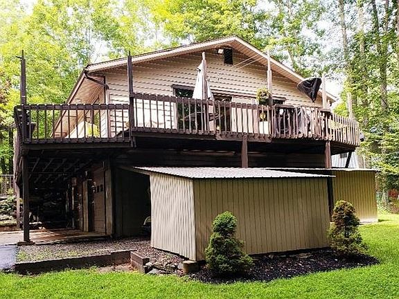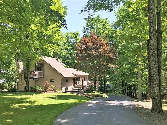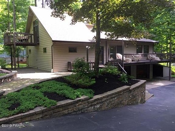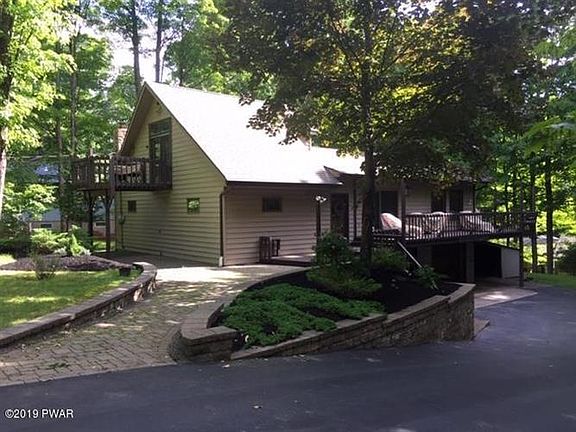 Three stories, three bedrooms, three full bathroom. Open floor plan. Master suite with private bathroom, Jacuzzi tub and deck . Paved driveway. Landscaped. Made for entertaining. Boat slip on Lake Wallenpaupack included. Road maintenance, water and boat slip included with HOA fees. Three blocks from Lake Wallenpaupack, beach, picnic area, and fire pit areas on lake shoreline. One of the few places on the lake that is flat near the water no steep inclines or steps to get to the water. Boat launch area. Well maintained. Home has a two car garage, one large enough to fit boat. Parking pad to fit multiple cars. Side walk done with pavers. Deck that encompasses 3/4 of the home on main living space. Custom built home.