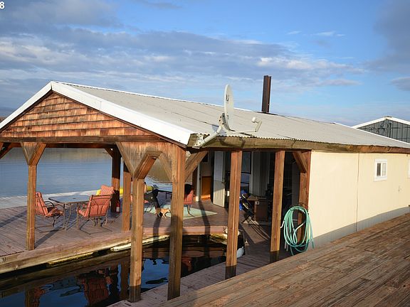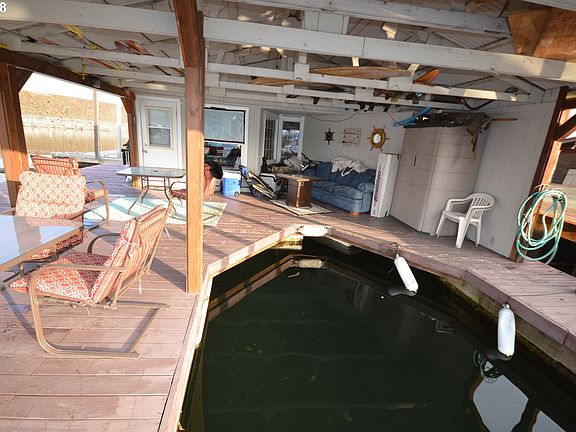 One of the most preferred locations in The Dalles Marina at the end of C-dock. A limited number of boat houses come available at the marina so here is your chance to have your own recreation on the water with city water and sewer services. Studio space with very large decks and a partially covered boat well.