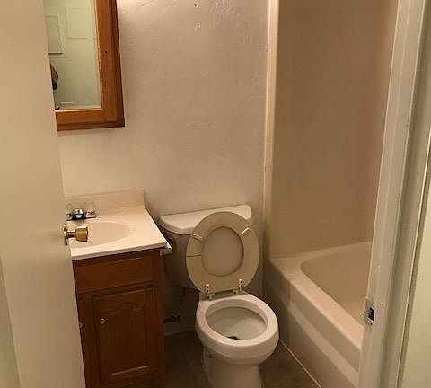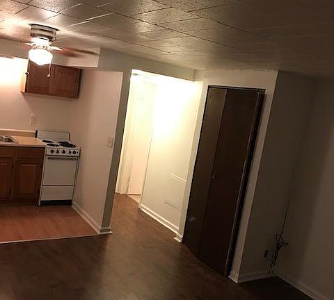 Quiet, nice residential area. Tenant pays rent + electric. All electric apartment. Landlord pays water, sewage and garbage (dumpster in parking lot) Off street parking lot in rear of building. Coin operated laundry in storage room. Cats allowed...sorry...no dogs. $50/mo. pet fee, for 1 cat. Tenant pays electric. All electric apartment. Owner pays trash, water and sewer.
