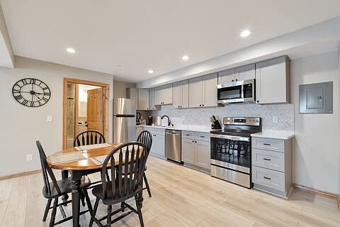 FULLY FURNISHED and BEAUTIFUL!! Master bedroom with high-quality king bed. Double closets. Full kitchen stocked with housewares and appliances. Two beautiful bathrooms with heated floors. W/D. Televisions in living room and master. High-speed, fiber internet. Off-street parking right by entrance. This apartment is situated at the rear of a business building (newly renovated / historic) in Morgan's historic district. Right off the freeway exit. Walking distance to restaurants, schools, park, grocery store, etc. Owner pays for gas. Renter pays for city utilities: electric, water, and sewer.