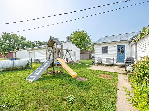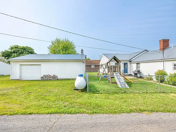 Waynesfield Goshen School District home! This spacious 4-bedroom, one-story residence offers comfort and functionality. The cozy living room flows into the the well-appointed kitchen which includes a built-in pantry, a full appliance package, and a work island with seating, making it ideal for gatherings and meal prep. A beautiful dining room or family room is located at the back of the home and has nice windows overlooking the fenced backyard and patio perfect for entertaining. The large master bedroom features a walk-in closet, while three additional bedrooms provide ample space for family and guests. There is built in storage thru out the home, and a large laundry room. The detached 24x32 outbuilding offers a workshop, with a wood burner plus a mancave room and a garage, with an electric door opener and alley access which adds to the convenience. With a new gas furnace (2020) and central air conditioning (2018), you'll enjoy year-round comfort. The durable metal roof on both the house and garage ensures longevity. Don't miss this opportunity—schedule your visit today!