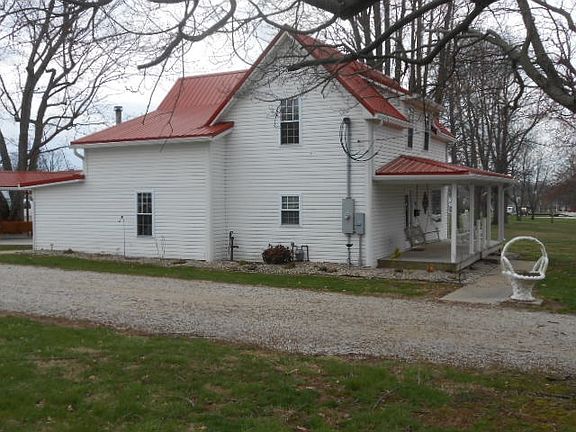 6+ acres with pond and fenced with horse barn that has a workshop and 1 car garage. 4 bedroom home with 2 baths, oak cabinets in kitchen/dining area, master bedroom has large walk in closet and bathroom. Family room, large living room, basement, metal roof, covered patio, and lots of extras. Also includes a separate pool table room. If you want close to town with acreage take a look at this one.