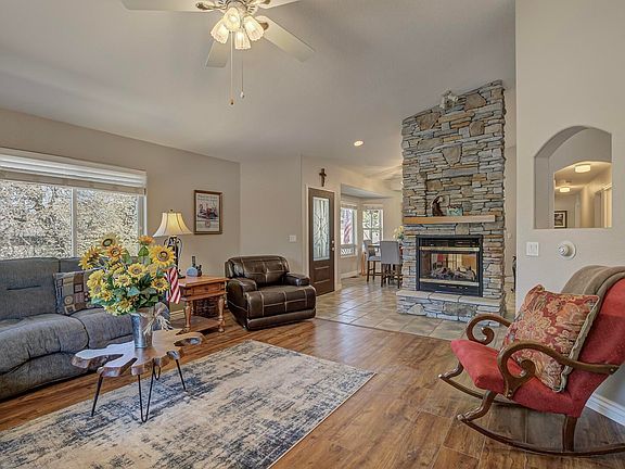 This property offers a lot. Much of it has been upgraded since 2020 -- new roof, A/C and heating, refrigerator, stove, water heater, toilets, most flooring, and painted inside and out. There is also a full-house fan. The walk-in pantry is across the hall from a laundry room. Both have built-in cabinets; laundry room also has a utility sink. There are built-ins in the double garage. The work shop, with work bench and sink, is the place to do handiwork. The front covered deck is a place to spend time relaxing, and for barbeques, the covered back patio is the place to be. Both covered deck and covered patio have roll-down shades. Automatic drip system and house thermostat can be operated when you are away home and small, easy-care yard allows absences without worries.