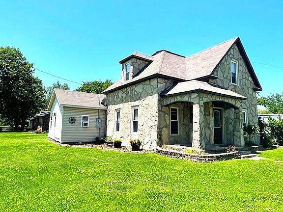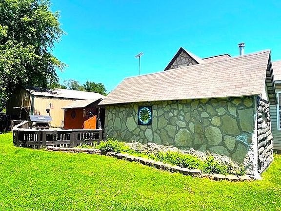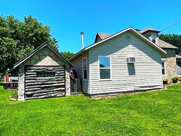 Come take a look at this 3 bedroom 2 bath home located on a large corner lot that is nicely landscaped with fruit trees and other perennial vegetation. There is a detached oversized 2 car garage/shop along with 2 additional outbuildings! Home features one large bedroom on the main floor with 2 additional bedrooms upstairs. Current owners have installed new flooring in the kitchen/dining combo. The window a/c units convey with the property. Come enjoy quiet living in this well maintained vintage home!