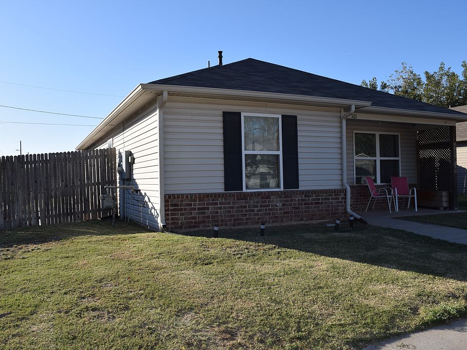 Unique corner lot built in 2020. Nice size yard with chicken coop, workshop with electricity, vegetable garden. This three bedroom, two bathroom home is open concept with on demand hot water, upgraded fridge, Bosch dishwasher, and Speed Queen clothes washer! Two of the bedrooms and one bathroom are upgraded with engineered hardwood plank, carpet in living room and master bedroom. Vinyl throughout the kitchen and 2nd bathroom for durability and easy cleaning. Walking distance to the famous Historic Downtown El Reno, with attractions like trolly rides, Sid's Diner on Route 66 and Johnny's Grill both known for onion burgers! 2024 Twisters movie filmed final scene at "Centre Theater" you will be sure to recognize! Landlord not onsite. Yard maintenance included. Owner pays for yard maintenance. Renter is responsible for all utilities and will be in renters name, Sewer/water/trash est. $112/ Month, Gas est. range is summer $45 to winter $180/ month, Electricity est. range is winter $70 to summer $195/month. Pest control to be determined based on animals or children. 12 month lease. No smoking of any kind.
