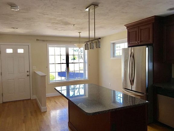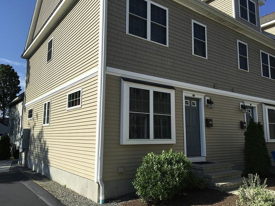 MANSFIELD TOWNHOUSE - End Unit - Three bedroom, 1 1/2 Bath townhouse in Downtown Mansfield. Eat-in kitchen w/island, fully applianced with stainless steel appliances, hardwood flooring, leading to a bright dining area. Living room w/hardwood floors. Three good sized bedrooms w/wall to wall carpeting. One and half baths w/ceramic tile flooring. Full basement for storage. Gas heating and gas cooking. Central Air conditioning, two parking spaces. Washer and Dryer included. Walk to restaurants, library, schools, parks. Short walk to the Commuter Rail.