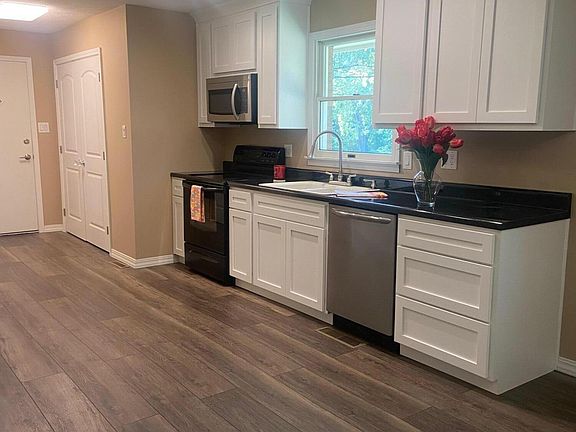 Nice 3 Bedroom 2 Bath Brick older home just renovated in town. Located in City limits on a nice lot .39 acre with huge shade trees. Kitchen has new cabinetry with soft close cabinets with pantry. Good size dining area in kitchen. New vinyl heavy duty industrial grade laminate throughout. Living Room has wood burning fireplace and new windows. Home has entry foyer. Master Bedroom is good size with huge double closet and adjoining bath with walk in shower just renovated. There is a 2nd Bedroom that is good size and a 3rd smaller bedroom. A newly added 2nd bath with walk in shower. Single car carport. Back yard is level with an older storage building. Sidewalk and covered porch entrance. New heat pump and water heater. Laundry area. Home is offering occupancy at closing.