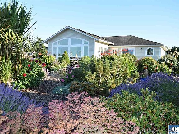 Lovely home, gardens and view of the Strait of Juan de Fuca! This home is filled with light and beautiful views. Great room has vaulted ceiling & skylights. Kitchen & baths have granite counters. Bonus room has windows on all sides, 4 skylights & door to deck. Master bedroom has 2 walk-in closets, one with built in desk area, large soaking tub & door to separate garden & water view deck. Lovely gardens surround the home with year round blooming plants= Room to park RV or boat. Extra large garage.