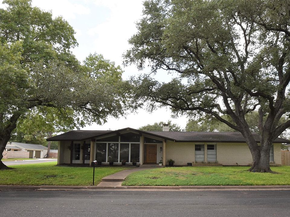 Timeless brick home on a corner lot surrounded by mature oaks. Recently remodeled with an open floorplan filled with natural light. The renovated kitchen features an inviting island, quartz countertops, freshly painted cabinets, and a walk-in pantry. Vaulted ceilings, a brick accent wall, and a cozy fireplace highlight the living room, while the sunken formal area boasts a wall of windows. The primary suite offers French doors to the backyard and a spa-inspired bath with double sinks, walk-in shower, soaking tub, and skylight. Enjoy your private backyard retreat with a sparkling pool and privacy fence. The front-yard irrigation system keeps the landscape lush year-round. The well-designed updates blend with the home’s solid construction, creating an ideal balance of comfort and functionality.