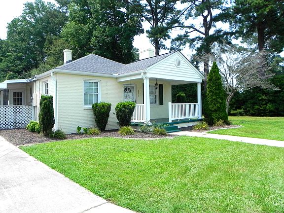 Come see this charming 1940's home in downtown Pikeville! Home features original wood floors, carpet in bedrooms, LVP in a recently remodeled bathroom which also features new beadboard walls, tile surround tub/shower, new sink and cabinet. Relax in your rocking chair on your freshly painted front porch with your beverage of choice, admiring your newly planted and freshly mulched landscape and taking in the calmness of your surroundings. Out back you'll find a sweet little gazebo and storage garage. Roof replaced in 2022. New HVAC as of July 2023. Very close to I-795. Just starting out or downsizing? Looking for an investment property? Come take a look and see if this is the right fit for you!