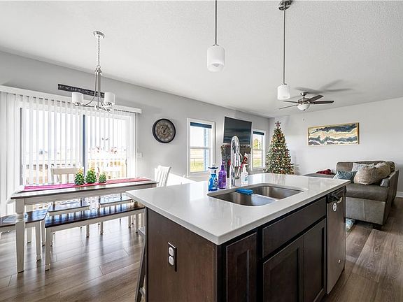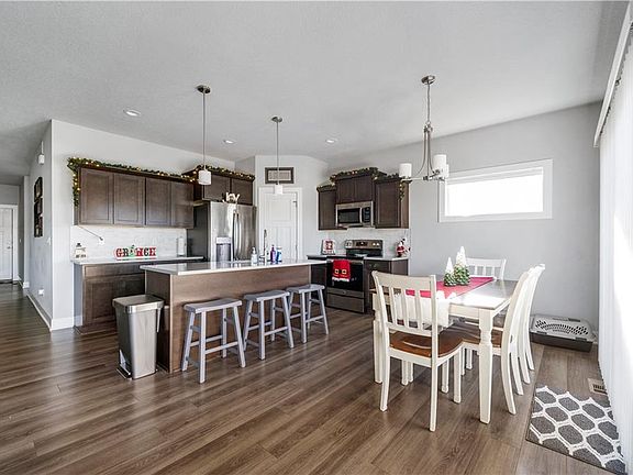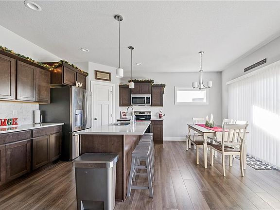 Welcome to Grimes and this Beautiful Ranch home! Located at the end of a cul de sac, it features 4 bedrooms and 3 baths, with over 2,300 finished square feet! A gorgeous kitchen, with quartz counter tops, features a large island, corner pantry, dark kitchen cabinets, and stainless steel appliances. Sun filled eat in kitchen with access to 12x12 Deck. Everything flows well into a very open room plan and stone fireplace. Great drop zone with built in lockers, and laundry. Master bath features double vanities, shower, and a walk in closet. And lastly, don’t forget the 3 car attached garage and finished basement with a built in bar for entertaining!