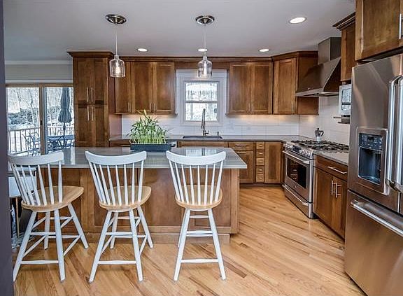 Walk to town from this turn-key, updated 3BR Cape. Extensively renovated, the open-concept floorplan flows seamlessly past a white marble fireplace to a new, stylish chef's kitchen incl. stainless appliances, granite countertops, and large breakfast island with seating and storage. A vaulted family room features exposed wood beams. The bedrooms are spacious w/excellent closet space. The finished lower level functions perfectly as an artist or recording studio, but could be equally useful as a home office, exercise or rec room. The stunning property includes a waterfall, brook & stonewalls adjacent to open space. New roof, surround sound, hardwoods throughout. A perfect home in a perfect location.
