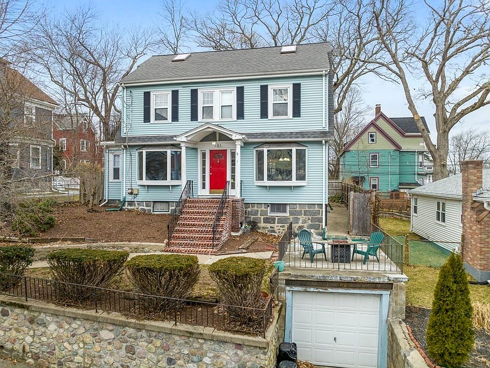 Welcome to your new home at 101 Newburg. This wonderful center entry colonial sits high atop a hill between Roslindale and West Roxbury giving it lovely views all around. This beautiful home has lots of room to spread out with four bedrooms, a large living room with South-facing sunroom, and finished attic space with skylights & city views. The open kitchen and dining rooms make for great entertaining space and flows seamlessly onto the enormous back deck, perfect for summer barbeque get togethers! The second floor features three good sized bedrooms, a primary bedroom with its own private patio, and a recently updated bathroom. The basement has plenty space for storage and endless potential. Newer roof and tankless water/heating system makes living easy. ~0.5 mile to two commuter rail stations makes commuting a breeze. You won't want to miss this one.