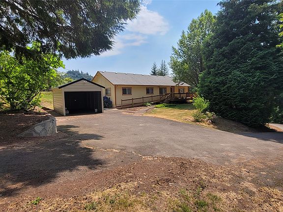Investor alert! Great location, secluded yet convenient! Fix up the manufactured home or build your own. 2 acres with a pretty view of the river from multiple spots. Mature trees and landscaping, paved drive and multiple out-buildings, including carport and shop. Close to I5!