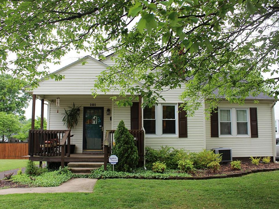 Super-nice house in city limits. 3 bedrooms (large closets in 2). Full bath. Living room with fireplace and built-in shelving. Kitchen with nice cabinets, pantry, and large dining area. Nice appliances stay. Hardwood flooring, all the charm and character of the era, but extremely well-maintained; and owners have done lots of recent updates including new bath. Basement is partially finished for den/rec room, bonus area, storm shelter, and tons of storage. Laundry facilities in basement. Large, wonderful screened-in porch for outdoor entertaining. 1-car detached garage. Sellers say attic could be finished for extra living space. Nice level yard with fire pit, lots of shade, and ample parking. Central heat/air. Gas furnace.