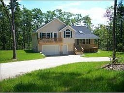 Outstanding value, quality and a unique design in this new tri-level cape. Features incl. cathedral ceilings w/skylights,Red oak and tile floors, ultra efficient radiant and FHW Heat,radiant heated garage, superstore water heater,cherry cabs. Master bedroom w/bath and jetted tub and also a balcony with beautiful views.With a front porch and also a deck off the kitchen there is plenty of space to enjoy the beautiful setting of this country home.