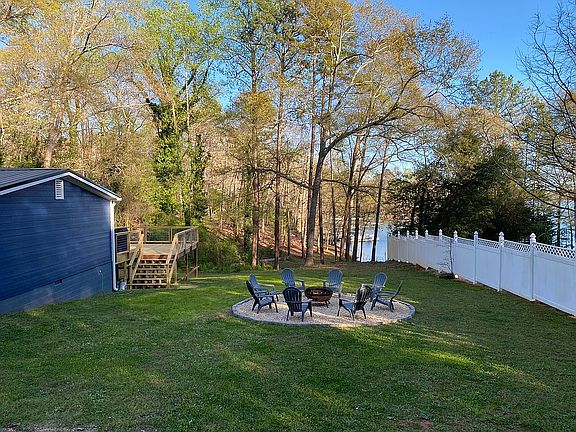 This lakefront, remodeled double wide makes a perfect and affordable lake home. 1990 Horton mobile home situated on .945 acre lake lot with a 10'x20' platform boat dock in place. Large open deck with great view to lake, enclosed sunroom, detached storage building, and a covered 2-car carport. By water, this property is located across from the Hartwell Marina.