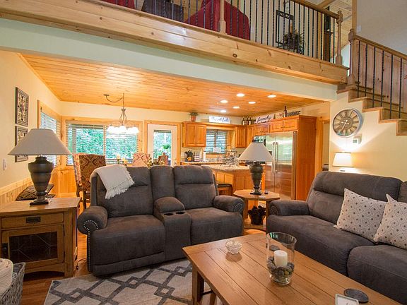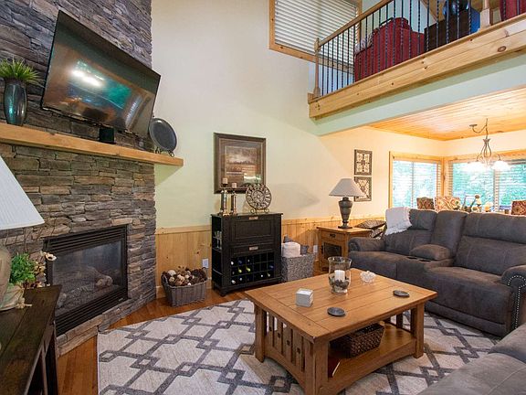 What's not to love when a cabin that has a front and back porch! Step into this well maintained cabin & feel the love. Main floor offers vented gas log fireplace w/bedroom & bath on the main. Upstairs offers lrg loft, owners bedroom & bath,the basement offers plenty of storage or have it finished. Stubbed bath, laundry hook up is downstairs. plenty of parking w/easy turn around, Check this cabin out; you will not be dissapointed. Walking distance to the lake and Morganton point.Owner motivated Bring me an offer!