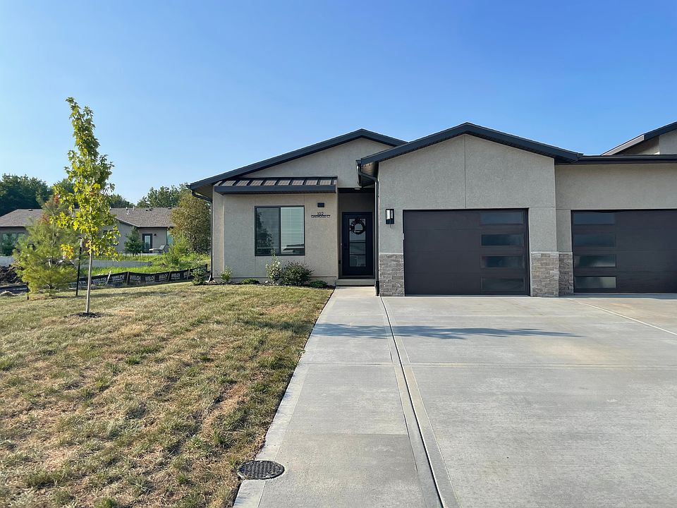 Beautiful maintenance free ranch villa in a quiet wooded neighborhood with a pond and walking trail. Just minutes from 49 highway. This property is finished with warm wood floors throughout. The Master bath offers both a walk in shower and a separate 6 ft soaking tub along with a double bowl vanity and a walk in closet. walk out your back door to a quiet patio surrounded by trees. This is a true find. Renter is responsible for all utilities