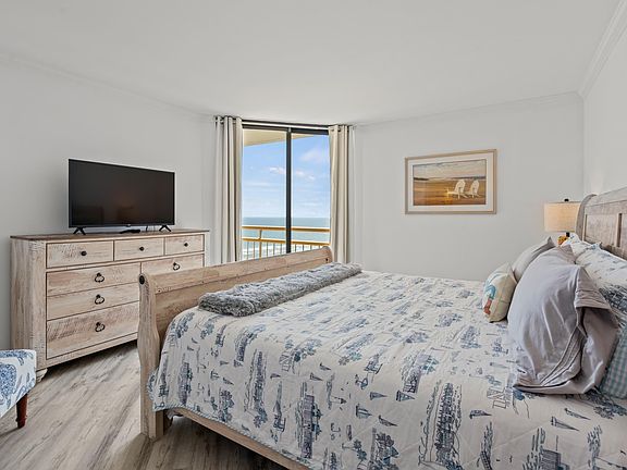 Welcome to the desirable Ocean Creek Plantation located near Barefoot Landing in North Myrtle Beach. This beautifully renovated condo in the Ocean Creek South Tower has GORGEOUS UNOBSTRUCTED LONG RANGE VIEWS of the ocean, Briarcliffe Acres and the Myrtle Beach coastline. Every inch of this space has been updated with new LVP flooring, new kitchen cabinets, stainless steel appliances, silestone quartz countertops, new luxe bathrooms, and is offered turn key to showcase just part of its appeal. The master bedroom has its own private balcony. Ocean Creek's resort like amenities makes this home an amazing primary, vacation home, or short term rental investment property.