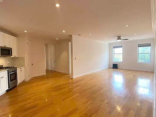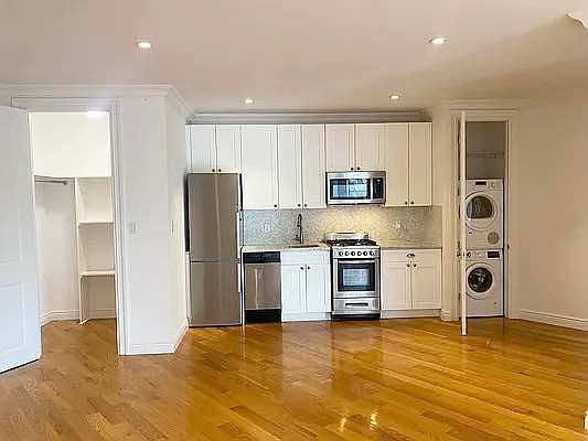 One of a kind! If you're looking for SPACE and Light you found it!! This beautifully renovated 2 Bedroom 2-bathroom apartment has a rare and very spacious layout, approximately 1120SQFT with great views, light and plenty of closet space including 5 closets total and 3 walk-ins! The kitchen and living space is an INCREDIBLE open huge flow with Carrera marble countertops, white shaker-style cabinetry and GE Profile Stainless Steel Appliances incl. dishwasher/ microwave/fridge and stove. The living room is equipped with a ceiling fan , recessed dimmer lighting and multiple outlets with usb ports built in. Washer/dryer is installed in-unit and there are 2 marble tiled bathrooms, one en-suite with a large window, recessed dimmer lighting, crown moldings and hardwood floors throughout! This apartment is on the 4th floor of a well-kept pre-war elevator building with live in super and private storage available. Gut renovated just a few years ago! Heat/ hot water included and pets OK, (large on approval) Just a few blocks to the F/G train at Ft. Hamilton Pkwy and Prospect Park Available for move in July 1
