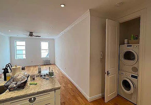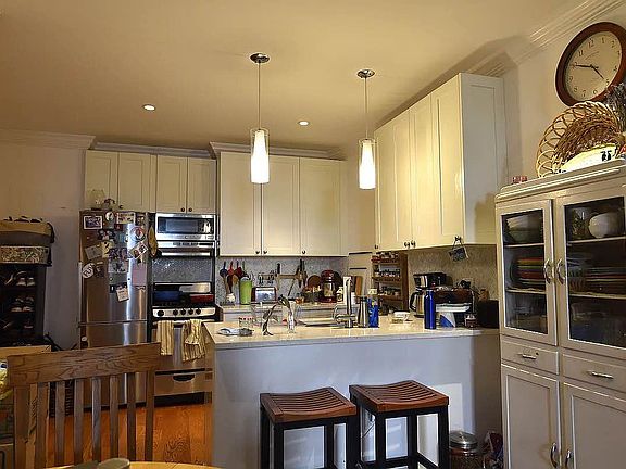 This beautifully renovated 3 Bedroom 2 bathroom apartment has a spacious layout with plenty of closet space. There is a beautiful kitchen with large island, carrera marble countertops, White shaker-style cabinetry, GE Profile Stainless Steel Appliances including dishwasher/ microwave. You have a Generous size living room with ceiling fan, 3 queen size bedrooms and 2 full bathrooms. Washer/dryer is installed in-unit for your convenience This apartment is on the 4th floor of a well kept elevator building with live in super and private storage available (additional fee). Heat/ hot water included and pets OK on CBC basis! Just a few blocks to the F/G train at Ft. Hamilton Pkwy and Prospect Park Vacant and available now