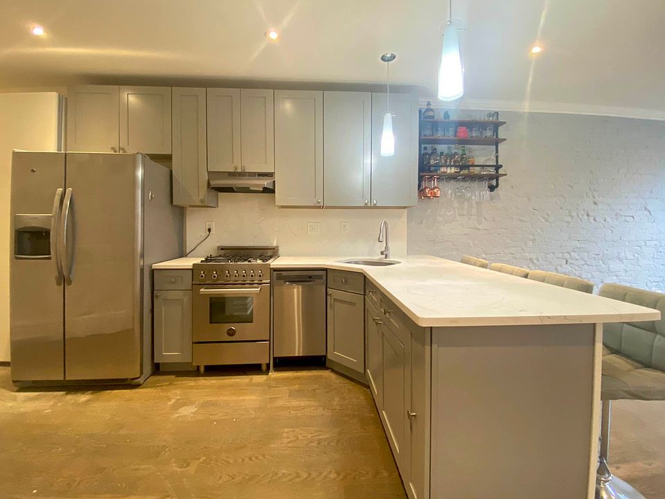 This beautifully renovated 2-bedroom, 2-bathroom apartment offers a spacious layout with washer dryer installed, high ceilings, ample closet space, and gorgeous hardwood floors throughout. Both bedrooms are generously sized to fit King size beds and feature closets and windows for natural light. The modern kitchen boasts a large marble island, sleek white shaker-style cabinets, and a full suite of stainless steel appliances, including a Bertazzoni range, dishwasher and double door refrigerator. Additional highlights include recessed dimmable lighting, elegant crown and baseboard moldings, and a ceiling fan for added comfort. Located in 101 Ocean Parkway, a charming pre-war building with an elevator, live-in superintendent, and storage cages available for lease (for an additional fee). Just a few blocks from the F/G trains at Fort Hamilton Parkway and the lush greenery of Prospect Park, this pet-friendly home welcomes small pets as well as larger pets upon approval. Heat and hot water are included in the rent. Available for move in asap
