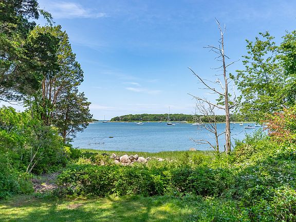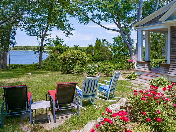 With lots of lovely places to sit and watch the boats and birds, and a gentle slope to the private 50'+/- shore of West Falmouth Harbor complete with an out-haul for small craft, this is an idyllic spot to simply enjoy all that's good in a Cape Cod life! This totally charming West Falmouth Harbor-front Cape with old-world charm offers gorgeous views throughout! A beautifully appointed home with high ceilings, Oak and tile floors, 3-4 bedrooms, 2.5 baths, central a/c., a native stone fireplace with a blue stone hearth highlighting the living room with recessed lights, built-ins, and doors to the beautiful back porch and yard. The first-floor primary suite has a lovely ocean view, large closet/dressing room; and private full bath with a 6' tub, and tile shower. The kitchen features cherry cabinets, gas range, dishwasher drawers, and a breakfast bar. The 2nd floor opens to a spacious room with slider to a balcony with beautiful water views, a full bath and 2 bedrooms plus a billiards room. New gas furnace, roof is 3 years old, 4-bedrm septic. Terrific location near the town boat ramp and dinghy dock, bike path, West Falmouth Library, Chapoquoit Beach and Black Beach.