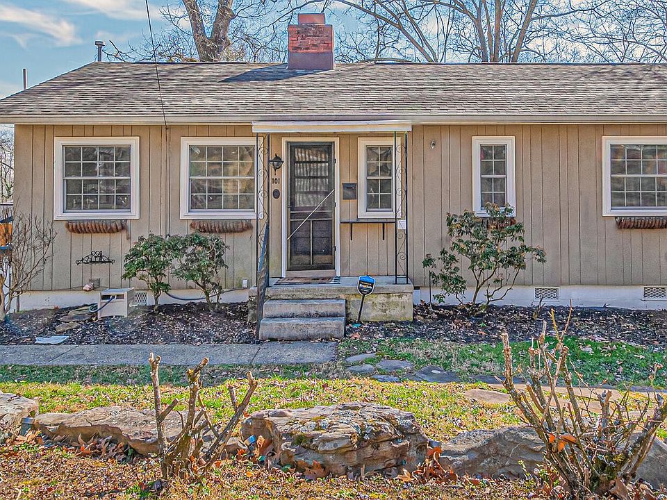 An Oak Ridge original Type B Cemesto wonderfully updated and ready for new owners to move in! Hardwood and tile flooring, gas fireplace, sunroom w/ double doors leading to double deck & fenced yard. Updated kitchen has soft-close cabinets with roll-out drawers, granite counters and stainless appliances. Natural light fills the living & dining areas. Built-in bookcases. 2 bedrooms & 1 updated bathroom. Laundry on main level. Unfinished basement ready for storage & workshop area.