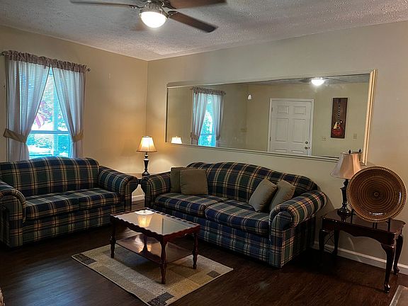 This is a home that has been split into two apartments. One unit is a Furnished 2-bedroom, 2-bathroom unit with shared patio in the quiet cul-de-sac of Riverbend. Utilities are included and maintenance is right around the corner. Kitchen comes equipped with refrigerator, electric flat top range, and built-in microwave. No pets, no smoking. No washer or dryer on site for use.