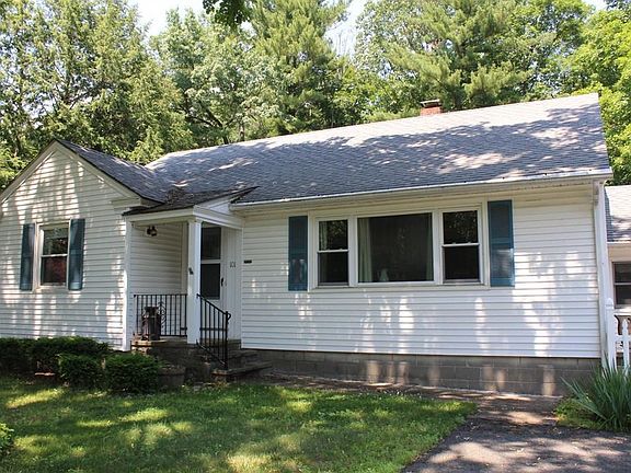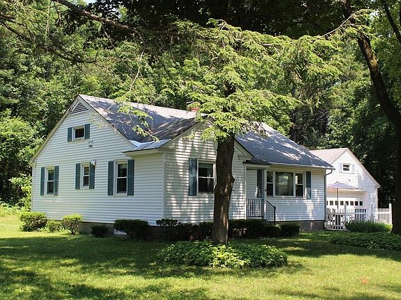 Located at the end of a quiet dead end street, this well maintained 1952 ranch-style home has much to offer. Set on .61 acres surrounded by trees, this home offers convenience and privacy. Whether you are looking for your first home or wanting to downsize, this home offers one floor living with 3 bedrooms, updated bath with walk-in shower, large living room, kitchen with window overlooking the backyard and a walk up attic with plenty of storage. Beautiful hardwood floors, replacement windows, and cast iron baseboard heat throughout. There is a full basement with finished room, laundry hookup, utilities and workshop space. An enclosed porch between the house and oversize garage, large backyard deck and a patio give plenty of space to relax and entertain. The exterior has vinyl siding and a newer roof. Public utilities. This one won't last long.
