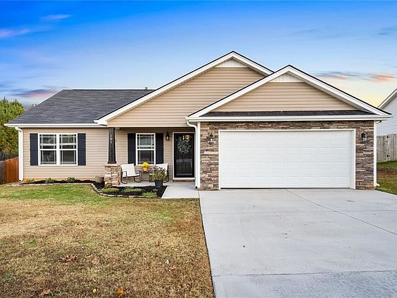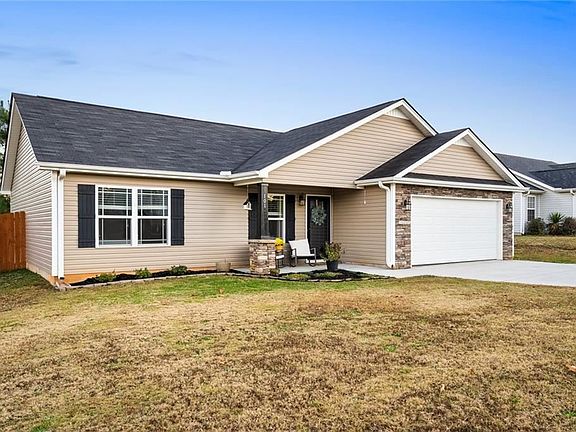 Get ready to find yourself at home at 101 Palm Branch Way! When you enter the home you find yourself in the open living room! Plenty of space for hosting friends flows right over to the bar seating space and kitchen. In the kitchen are beautiful dark chestnut color cabinets with a light grey countertop. You will find the backdoor next to the dining room space, and picture your summer evenings grilling in the backyard! A covered patio with space for seating has 14 feet of fresh concrete off to the sides! Back inside the master suite is on one side of the home with two beautiful windows for letting natural light in. The master walk-in closet is over 8 feet deep, with space for all of your clothing, shoes, hats, and accessories. The master bathroom has a large walk-in shower and between the double vanity is a large space for sitting at the mirror to help you get ready for the day. On the other side of the living room, you will find the remaining bedrooms and a full bathroom. Both bedrooms have a closet for storage, and the guest bathroom has matching cabinets to the rest of the home. Sit in the living room, walk the backyard, rock on the front porch, but whatever you do, don't wait for another second to make an offer to make this your home!