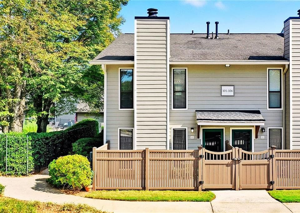 Active outdoors lover’s dream end-unit townhouse with smart home updates and no rental restriction allowing owners to lease their units during extended work and travel plans, this is truly a special spot at Park Ridge Condos, Marietta’s best kept secret neighborhood where convenience meets quick access to restaurants and entertainment, great schools (rated 9-10), a quick dash to Chattahoochee Nature Center's miles of paths, parks, and boardwalk, and 10 minutes from 285 and 400 interstates. Forget throwing away money on renting and invest into your own home while being able to lease it anytime! Boasting a generous 1 bedroom, family room with fireplace, convenient laundry off the kitchen on main, and a sunset facing front porch, this home is ready for all occasions with its chic flair and sporty pedigree especially for those who love tennis or pickleball! Enjoy quiet living within close proximity to multiple parks, fantastic schools including the legendary Walton High School district which secures all home values, and walking distance to Kroger Plaza and the many retail and restaurant spots that it has to offer. As you enter through the main door through a private courtyard portico, the layout opens up into a generous living room area with a fireplace connected to a kitchen and laundry with a modern LG washer and dryer that are included with the home. Flowing out of the kitchen, the dining area overlooks the front patio that’s ready for grilling, resting from a game tennis, getting ready for the pool, and overall entertaining family and friends. Savor easy living with an efficient new water heater, new flooring, new master bathroom with marble shower, and fresh HVAC, making this extraordinary home a confident property for many years to come. Make this maintenance-free home yours and share many beautiful moments as you take advantage of all that surrounding amenities and nature have to offer, stroll to the boardwalk, enjoy Marietta’s incredible shopping and food scene, and entertain your friends for years to come. The home is virtually staged and awaiting your personal touch! Now that's a smart and healthy investment.