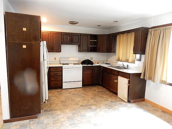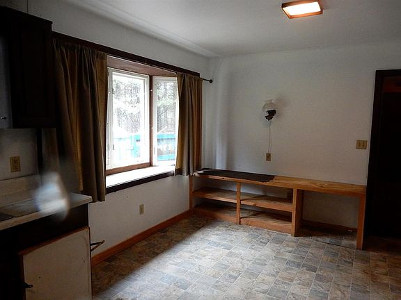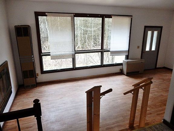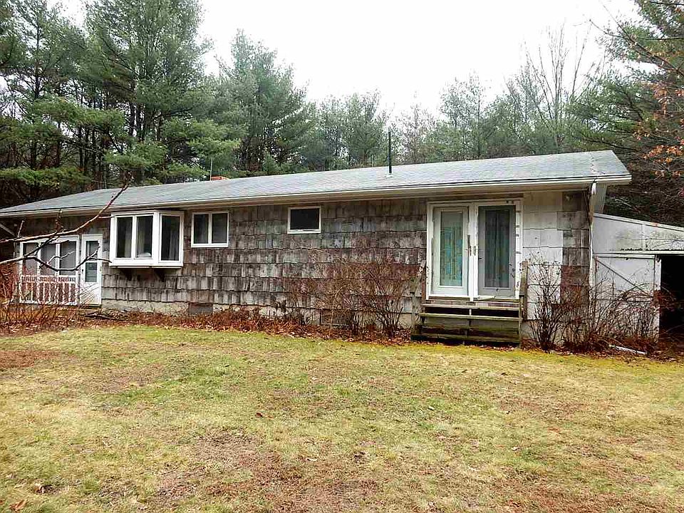 Very private setting surrounded by woods. Home has good bones just needs some updating and a little TLC. Large living room w/ laminated floors. Huge bedroom, could possibly be converted to a two bedroom. Attached garage may also be option of additional living space.