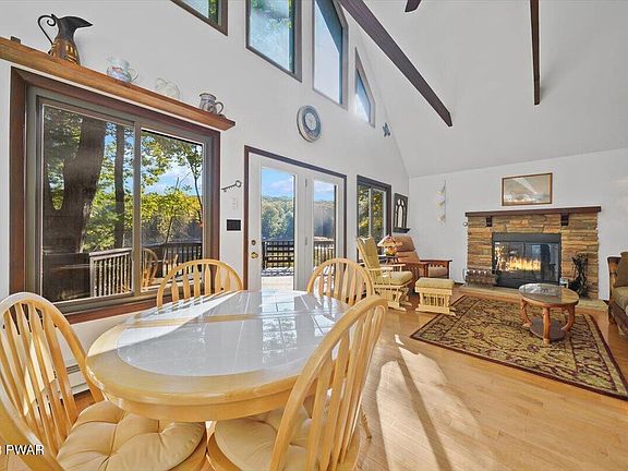 Make Memories Everyday in this perfectly sized and private lakefront home on Sunrise Lake! This Contemporary Chalet is in MOVE IN CONDITION and made for entertaining inside and outside! Open Floor plan features updated eat-in-kitchen and Living Room with gorgeous h/w flooring, exposed beams, soaring ceilings and wood fireplace for extra warmth and ambiance. The living space continues into the sun-soaked family room w/ lake views and direct access to the screened porch and deck. The loft area also offers plenty of space and flexibility for additional sleeping. There is a full bathroom & two bedrooms on the main floor including a primary BR w/ private 1/2 bath. Full walkout basement with laundry is great storage and easy access for all lake toys. Flat and easy lake access w/ dock and firepit. Sold furnished! Easy access to NY and NJ for your private getaway oasis!